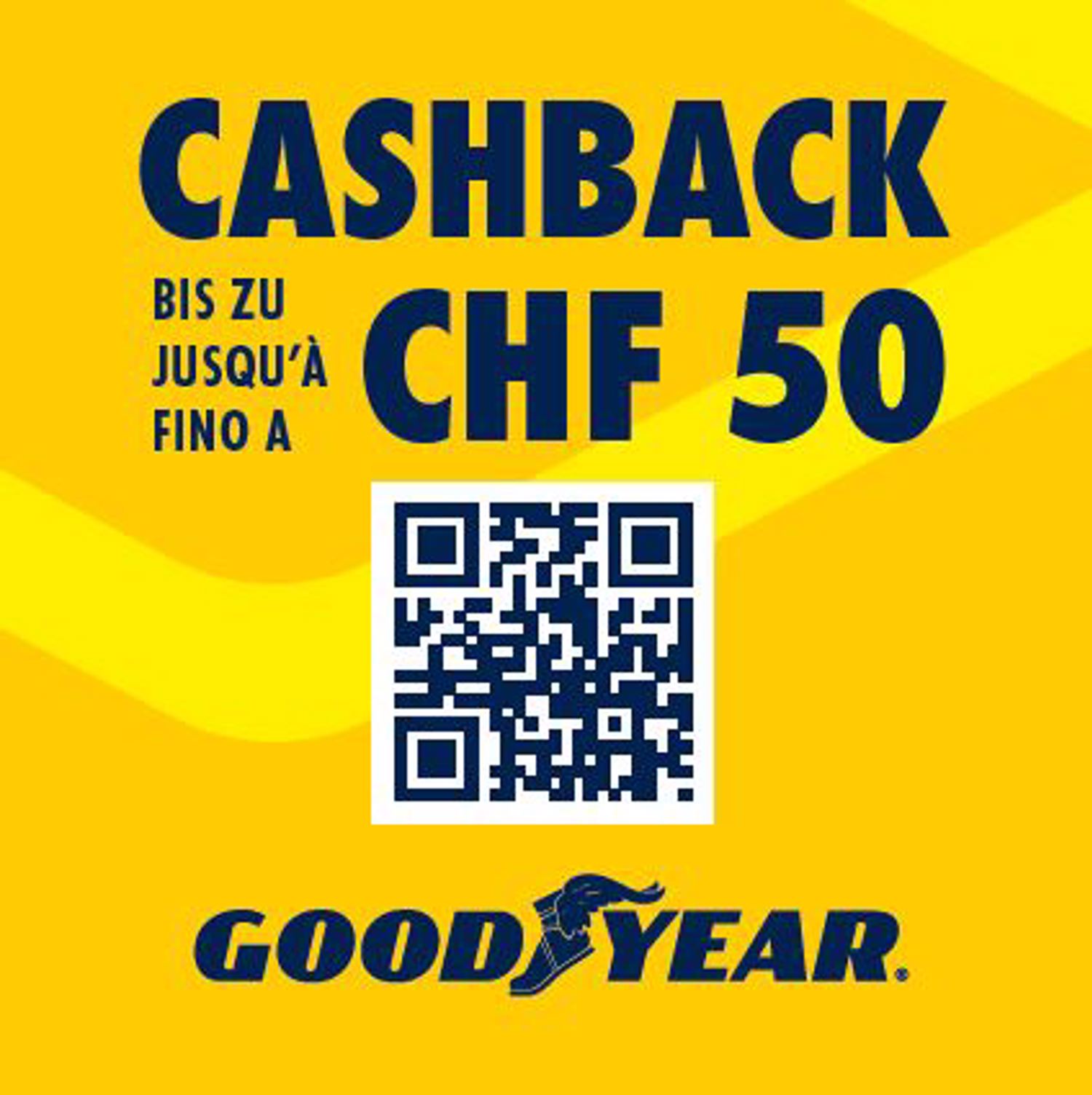 Kaufen Sie einen Satz Sommer- oder Ganzjahresreifen der Marke Goodyear (PKW und LLKW-Reifen) und erhalten Sie einen Cashback von bis zu CHF 50.–.